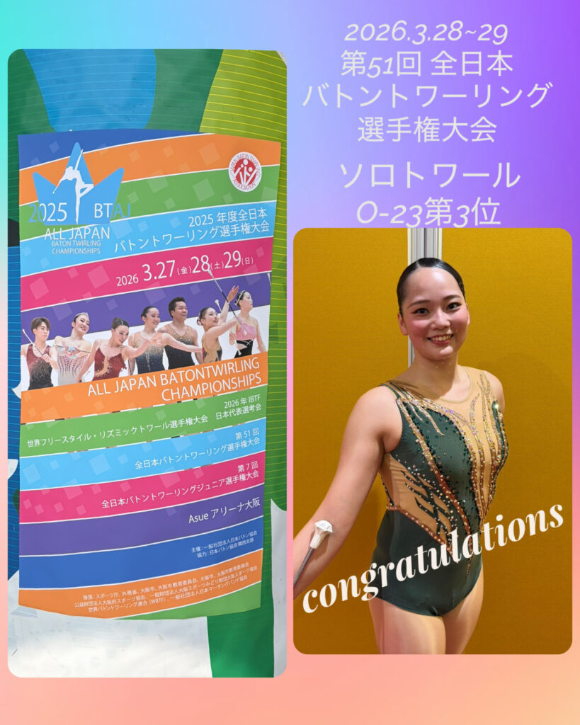 ★『第51回 全日本バトントワーリング選手権大会』狩野摩耶選手第3位入賞★